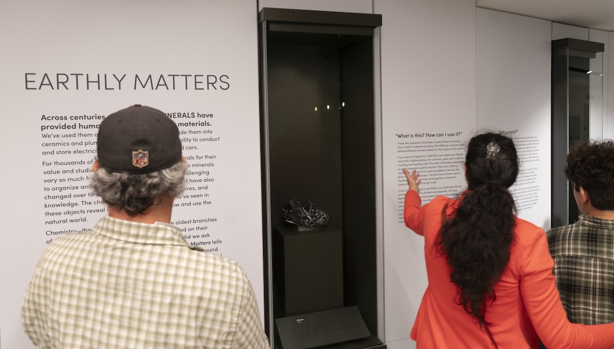 Earthly Matters is the Science History Institute’s new permanent exhibition that explores the history and science behind a collection of more than 20 recently donated minerals. On display in seven custom cases—including one featuring glowing specimens under special ultraviolet lighting—these elements, crystals, gemstones, and precious metals tell stories of human curiosity about the natural world around us.