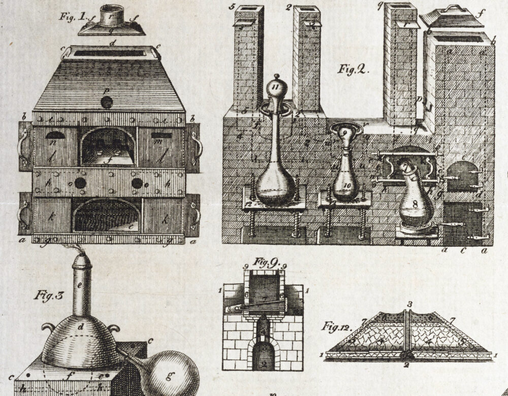 Featured image: Plate II: Various furnaces, part of A Dictionary of Chemistry, Vol. III, 1777