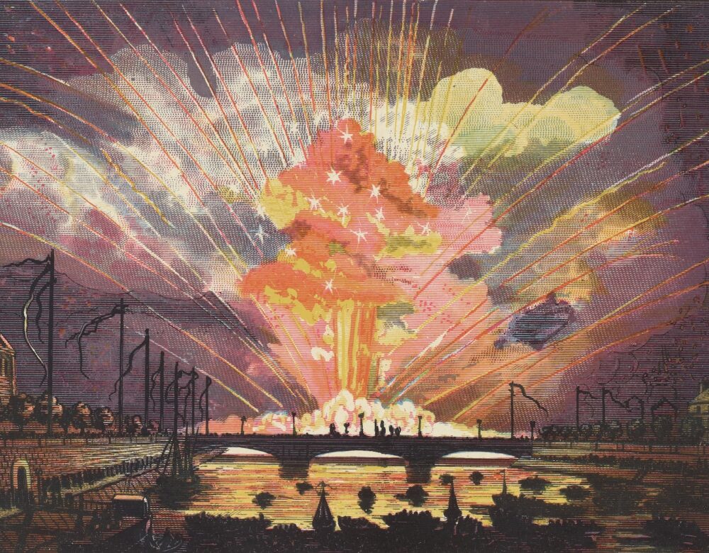 Featured image: Figure 53: Display of Fireworks on the Seine, Paris, from Chemistry, Developed by Facts and Principles Drawn Chiefly from the Non-Metals, 1884.